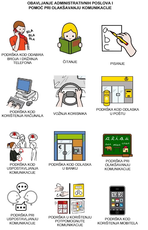 - pružanje podrške u kretanju gluhoslijepim osobama te podrške u komunikaciji između gluhoslijepih osoba i okoline, u svrhu pristupa informacijama u svim područjima života
