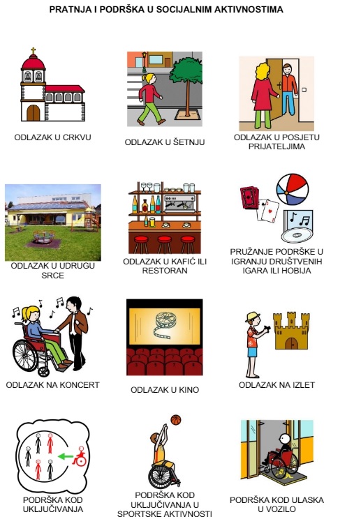 - pratnju i pomoć u različitim socijalnim aktivnostima, uključujući i putovanja unutar i izvan Republike Hrvatske