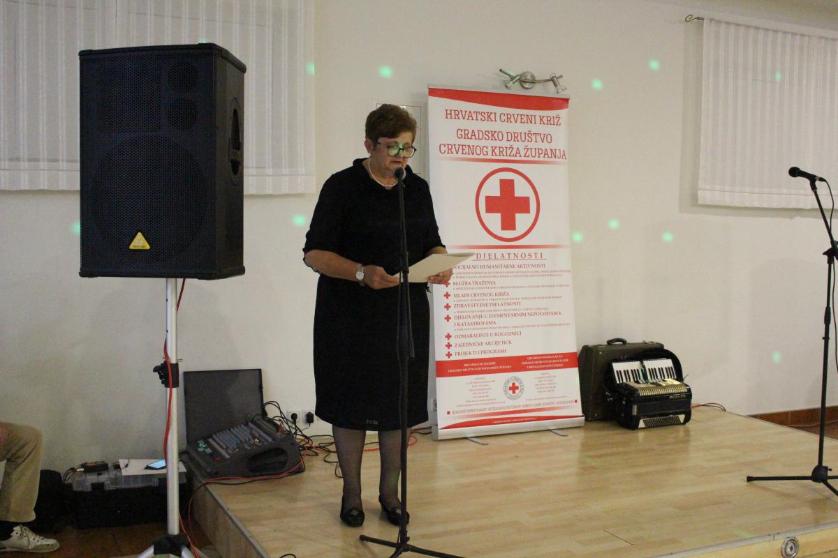 Riječi dobrodošlice uputila je Marija Dugalić, ravnateljica Gradskog društva Crvenog križa Županja , a potom je prigodni govor u povodu značajnih obljetnica Hrvatskog Crvenog križa održala predsjednica Gradskog društva Terezija Nemetz. Predsjednica je u svom govoru istaknula važnost djelovanja Hrvatskog Crvenog križa u značajnim povijesnim događanjima tijekom 145 godina djelovanja. Osvrnula se i na zadnjih desetak godina od poplava, migrantske krize, potresa te pandemije COVIDA-19. Zahvalila je na potpori brojnim članovima, volonterima, dobrovoljnim davateljima krvi i zaposlenicima koji su ugradili dio sebe u Crveni križ i pomoć bližnjima. U ime Grada Županja nazočne je pozdravio zamjenik predsjednice Gradskog vijeća Goran Lastavica, a potom i Mato Karalić, predsjednik Crvenog križa Vukovarsko-srijemske županije, koji je županjskom društvu Crvenog križa uputio riječi pohvale. Predsjednik Karalić se posebno osvrnuo na davalaštvo krvi u Vukovarsko-srijemskoj županiji ističući da krvi uvijek ima dovoljno te naglasio da se akcijama sve više odazivaju mladi.
